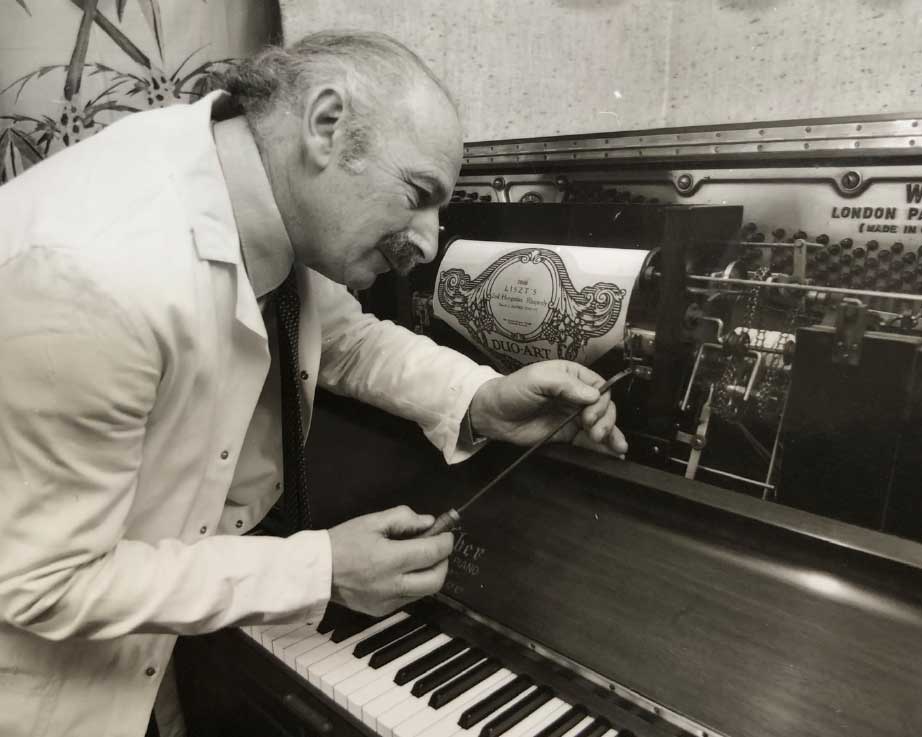 Grand opening of our central London showroom on Albany Street offering both new and preowned pianos as well as introducing a pioneering piano hire scheme in the 1960’s. Photo - Maurice Markson servicing on a Weber pianola upright piano.