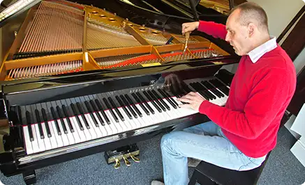 To explain fully what tuning a piano actually involves is the subject of many good volumes, and too large a topic to cover in full here. It is a highly technical skill and it is not something that can be learnt in five minutes; it takes many years of study and experience to achieve this status, and is generally recognised as something you should endeavour not to do yourself !